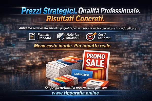 Come la tua Tipografia Online Roma EUR abbiamo selezionato una serie di articoli tipografici pensati per chi vuole comunicare in modo efficace senza sprechi: formati ottimizzati, materiali affidabili e costi calibrati per ottenere il massimo rendimento per ogni stampa.