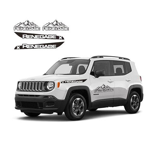 2 Adesivi Prespaziati Jeep Renegade Logo + Montagna in pvc adesivo Oracal. Dimensioni Logo: 120 x 52 cm. Montagna: 99 x 20 cm.
